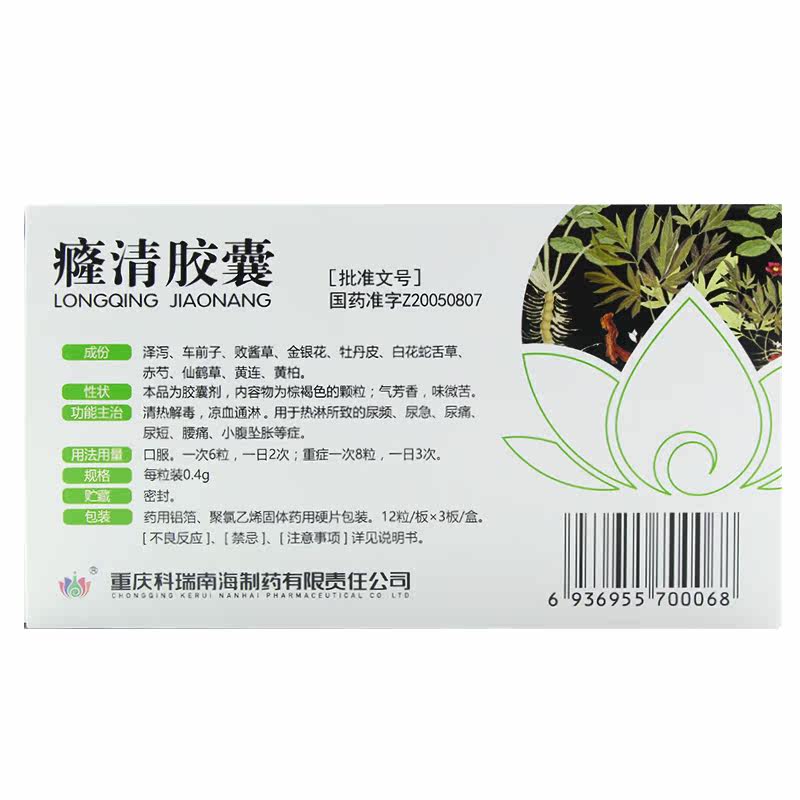 科瑞 4 капсула Qingqing 0,4 г*36 Капсулы/коробка [Rx] Частые мочеиспускания, срочность, моча, моча, боль, нижняя живот и боль в пояснице