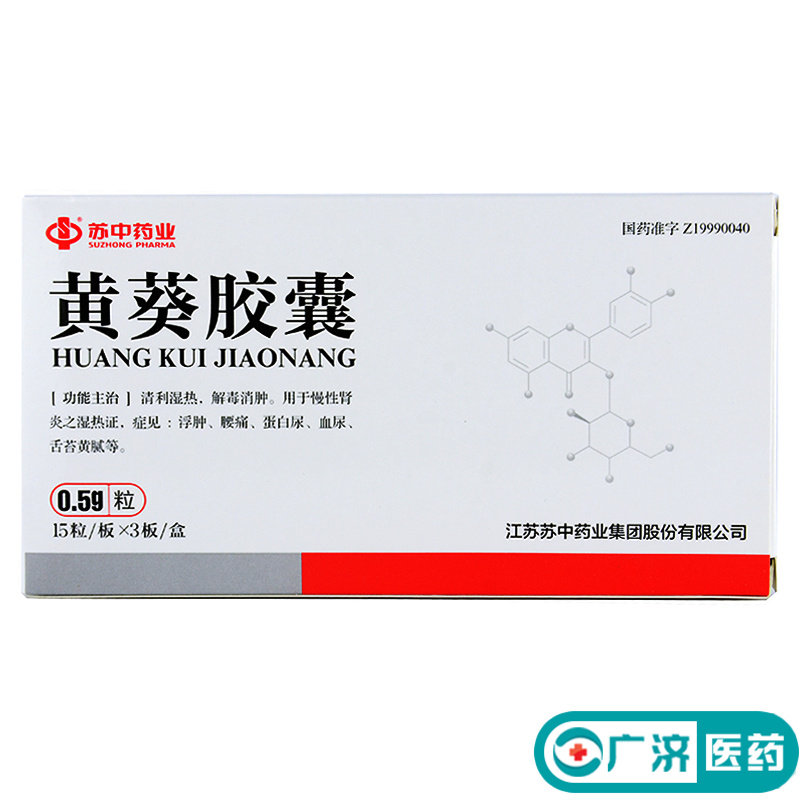 苏中 Желтая капсула подсолнечника 0,5 г*45 капсулы/коробка желтой капсулы подсолнечной, хронический нефрит, синдром теплового синдрома, и опухший поясничный белок, покрытие языка мочи крови