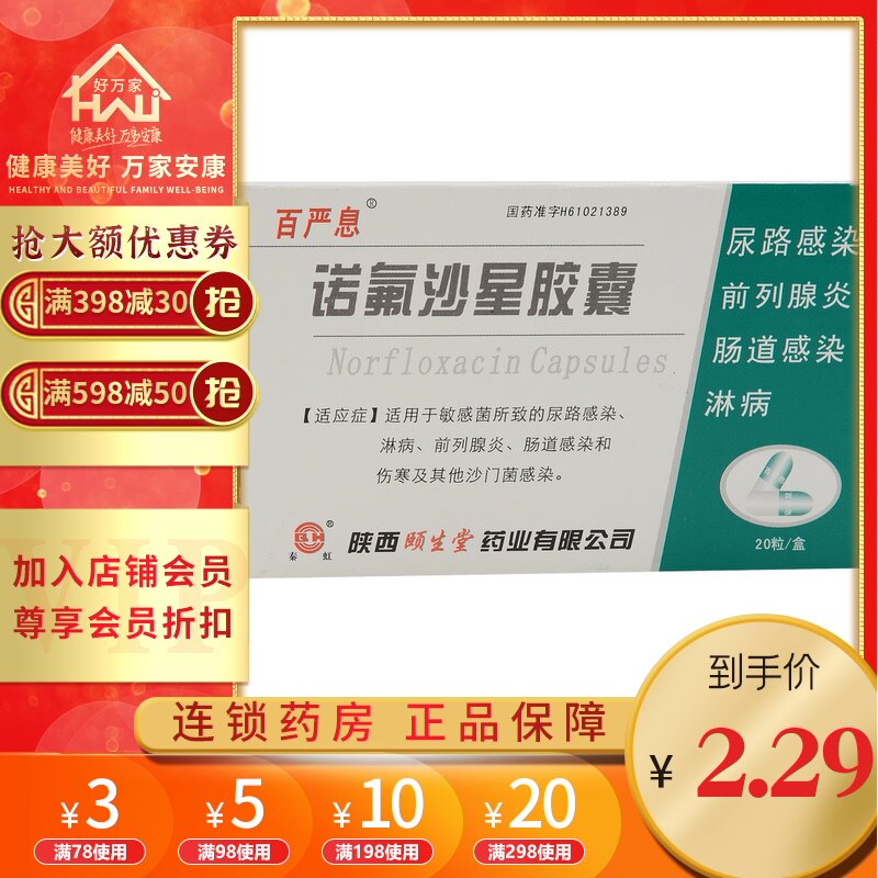 百严息 Капсулы норфлоксацина 0,1 г*20 капсулы/ящик простата гонорея кишечная инфекция инфекция мочевыводящего путя