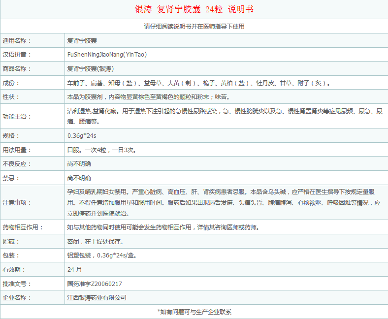 银涛 Капсула Fuyhening 0,36 г*24 капсулы/коробка