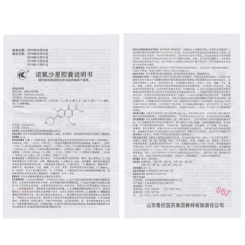 特格尔 Капсула норфлоксацина 0,1 г*24 капсулы/коробка чувствительных бактерий вызваны