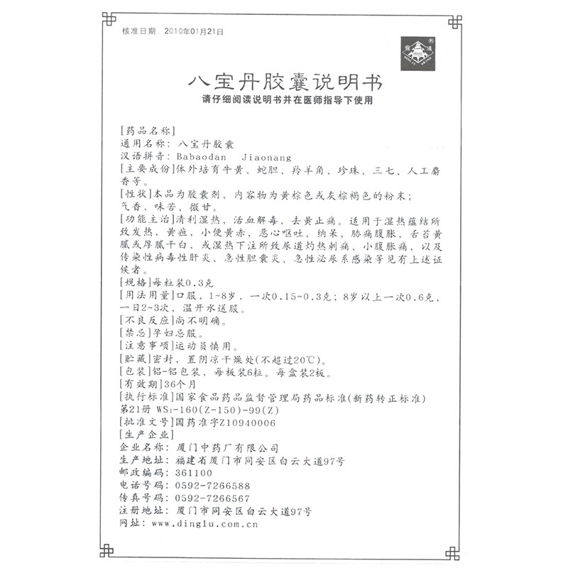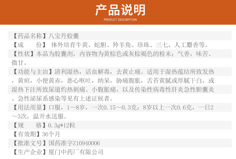 В руке низкой до 125/коробки] Капсула Ding Bao Babao Dan 0,3 г*12 капсул/коробку Qingli Demy Heat способствовал кровообращению и детоксифицирует желтую боль, тошноту, рвоту, гепатит, гепатит