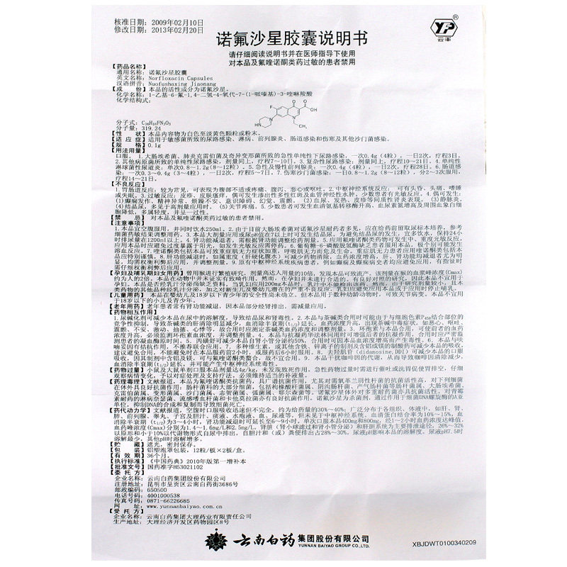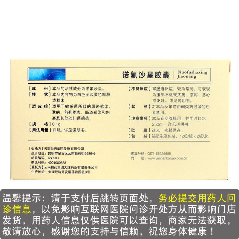 Юньнан Байяо капсула норфлоксацина 0,1 г*24 зерна инфекции мочевывод