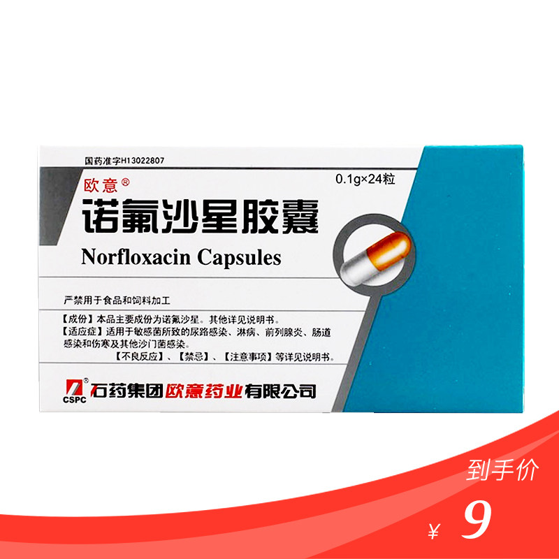 欧意 Капсула норфлоксацина 0,1 г*24 капсулы/коробка чувствительных бактерий, вызванных инфекцией мочевыводящих путей при инфекции гонореи кишечной инфекции и другой инфекции песчаноймель