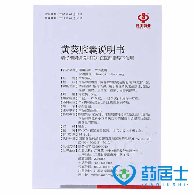 Всего 44] Suzhong Yellow Kwai Capsules 0,5 г*45 Капсулы/коробка хронический нефрит мочевой системы зарабатывать гематурию 30 отечность 30