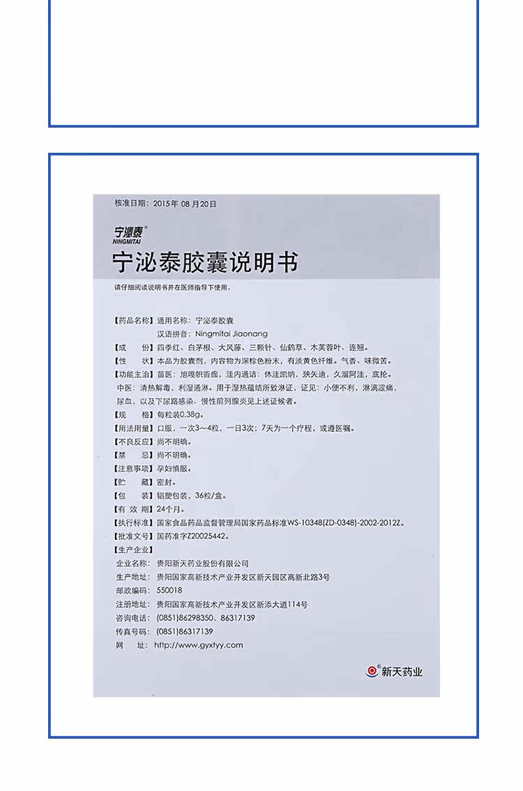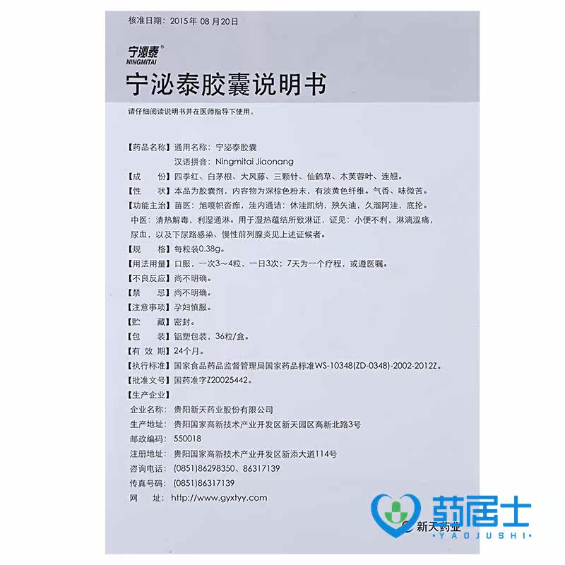 新天 Капсула Ning Bi Tai 0,38G*36 Капсулы/ящик прозрачный тепло, детоксикация, сырость, сырость и мочеиспускание.