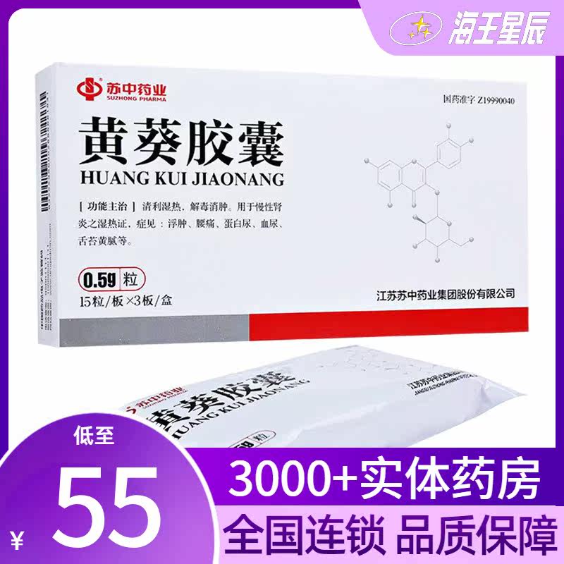 Бесплатная доставка] Капсулы Suzhong Huangkui 0,5 г*45 капсулы/ящик прозрачная сырость и тепло для детоксикации и уменьшения отек нефрита Хронический нефрит Обухший протеинурия боли в пояснице.