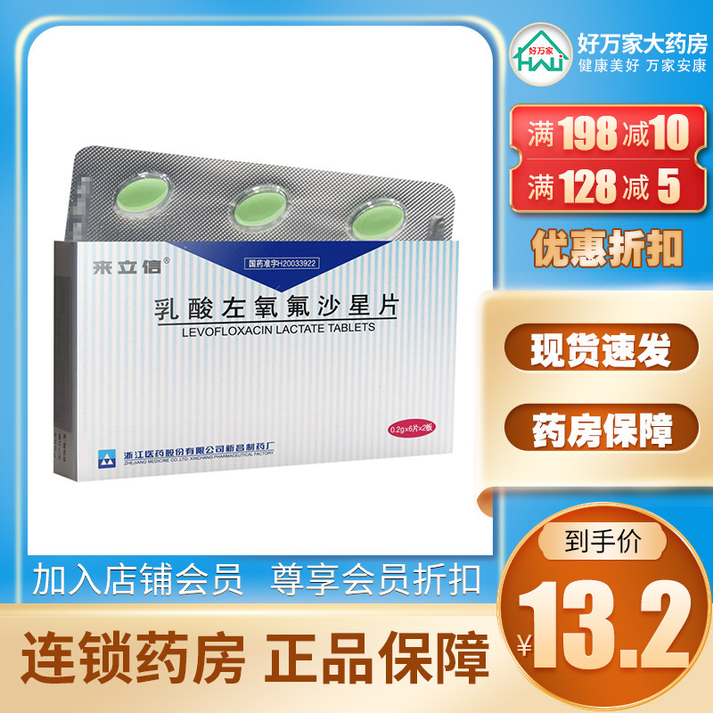 来立信 Лейсиновая молочная кислота левофлоксацин Таблетки 0,2 г*12 таблеток/ящик для инфекции инфекции желудочно -кишечной инфекции, инфекционная инфекция мочи