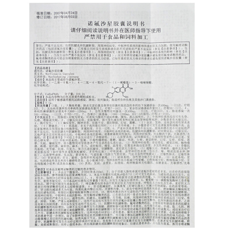 白云峰 Капсулы норфлоксацина 0,1 г*20 капсулы/коробка