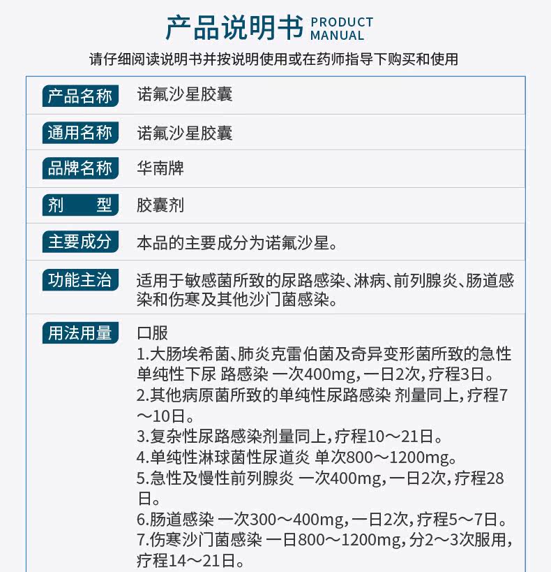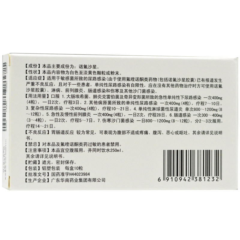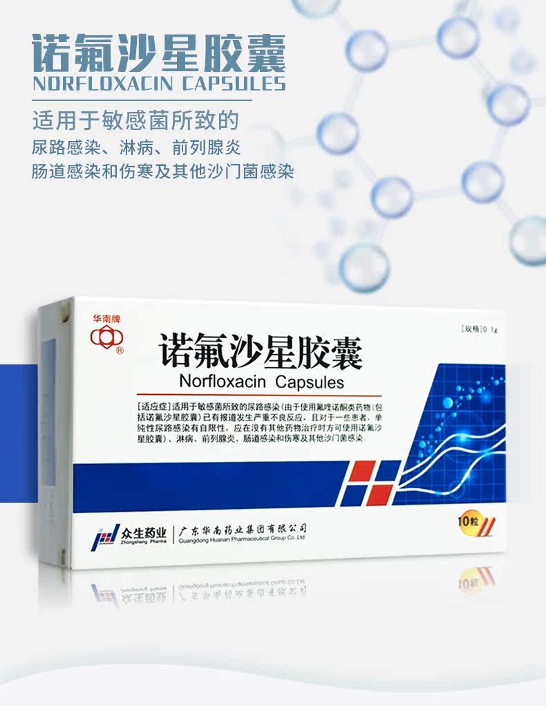 Южный Китай капсула норфлоксацина 0,1 г*10 капсулы/коробки простаты инфекция мочевыводящих путей инфекция гонорея инфекция гонорея