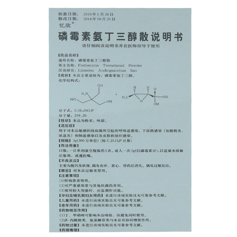 忆欣 Фосфатная амин амино триаколизированная рассеянная 3G*1 бутылка/коробка бактерий инфекция для более низкого инфекции мочевыводящих путей уретрит