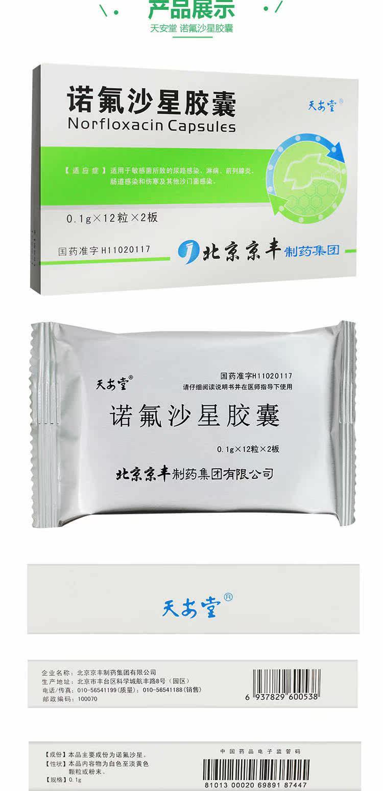 [RX] Tianantang Norfloxacin Capsules 0,1G*24 капсулы/ящики подходят для инфекций мочевыводящих путей, гонореи, простатита, инфекций кишечника и тифоидных инфекций, вызванных чувствительными бактериями.