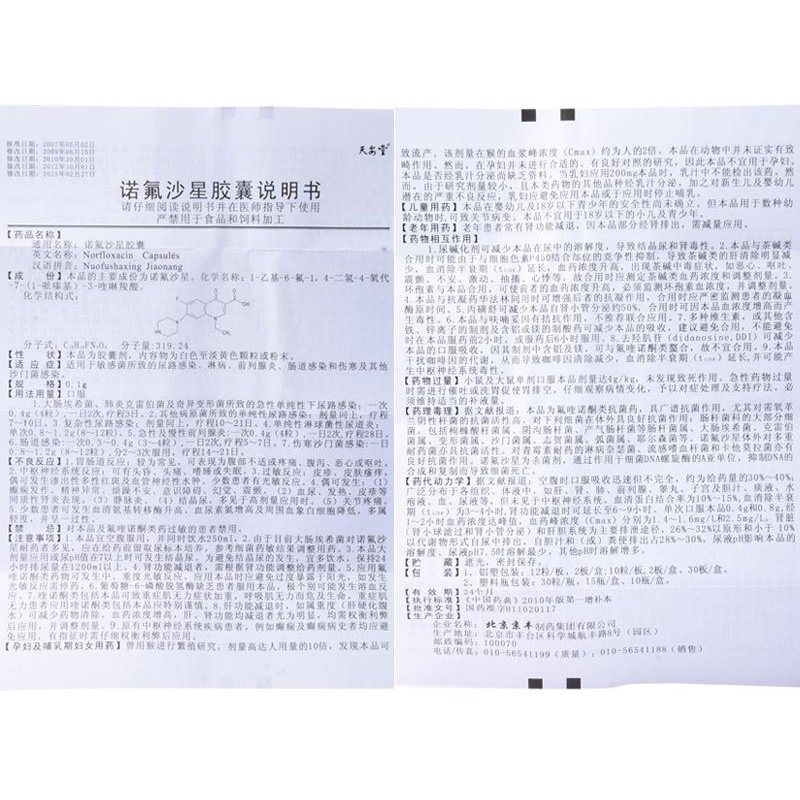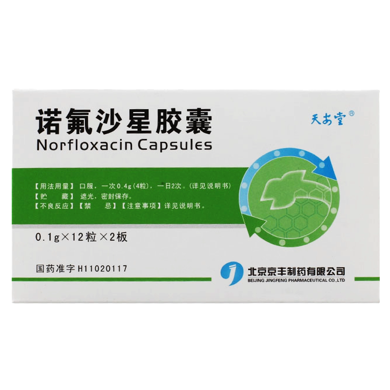 天安堂 Норфлоксацин Капсулы 0,1 г*24 капсулы/коробка Инфекция мочевыводящих путей гонорея простатит кишечная инфекция прием