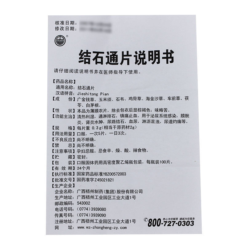 Тот же параграф с фармацевтами] китайские камни 0,3 г*100 таблеток*1 бутылка/коробка [прозрачная тепло, сырость, сырная слюна, гимниотит антиб цистит, фармацевтическая фармацевтическая фармацевтическая фармацевтика Гуанси Учжоу.