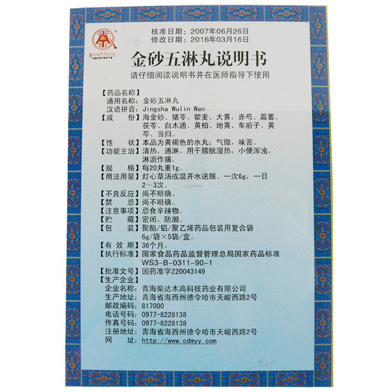 Бесплатная доставка] Zhuo Ma Dan Jin Sand Wulin Pill 6g*5 мешков/коробка прозрачная тепло, сыро