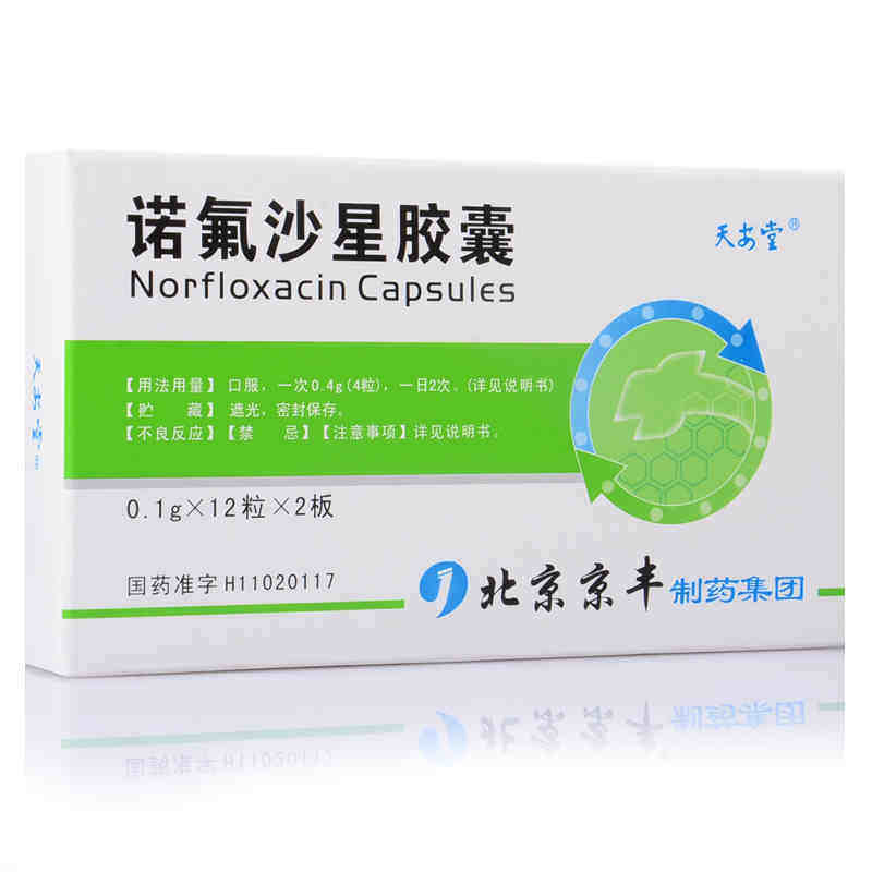 天安堂 Капсулы норфлоксацина 0,1 г*24 капсулы/коробка