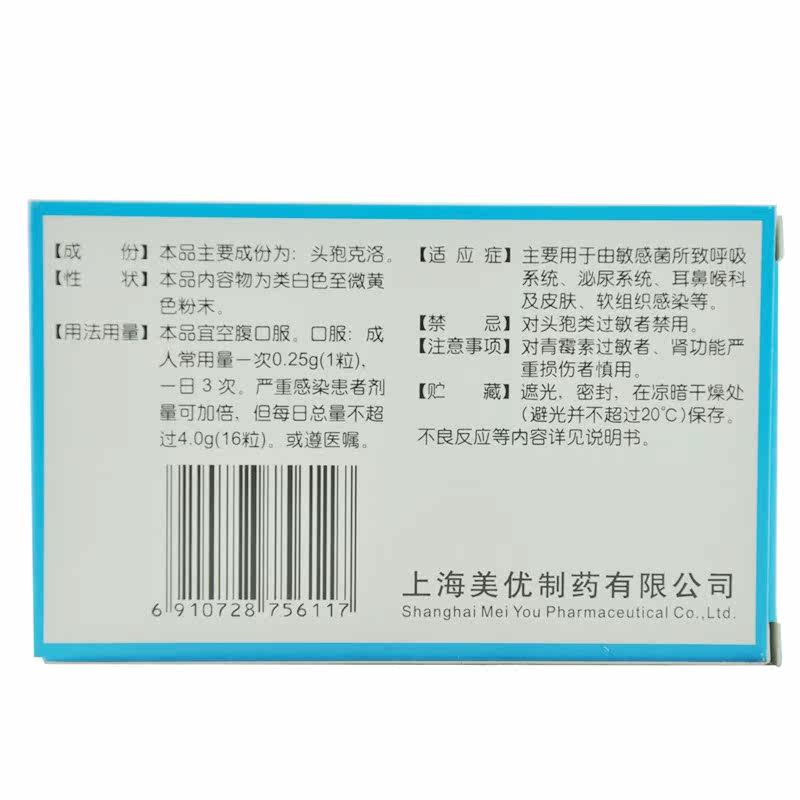 美优 Капсула Cefchlo 0,25 г*6 капсулы/ящик отоларингология и инфекция мягких тканей кожи