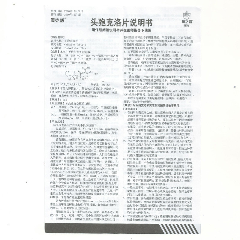 优克诺 Таблетки CEFCHOT 0,25 г*6 Таблетки/Коробка для цистита гонорея отит Среда Сотасокоистская ткань