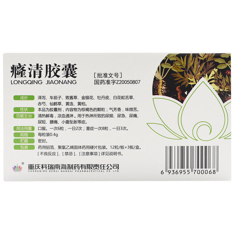 科瑞 4 Капсула Qingqing 0,4 г*36 Капсулы/ящик мочеиспускания инфекции срочности и частого мочеиспускания, боль в моче, нижняя живот, отек