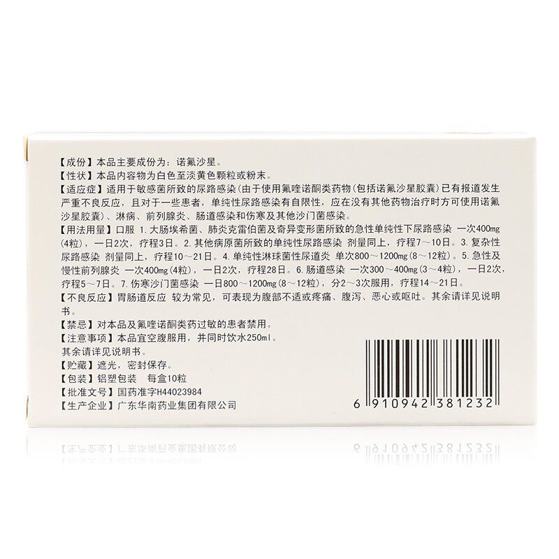 华南牌 Капсулы норфлоксацина 0,1 г*10 зерна инфекции мочевыводящих путей самки гонорея уветтрит анти -инфляторный препарат нефунолонова сахастин капсула сахастин