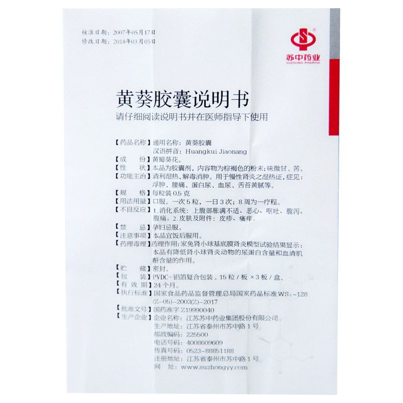 苏中 Желтая капсула AOI 0,5 г*45 капсулы/коробки Цинли влажное тепло, детоксикация, отек и набухание хронического нефрита, отек, отек, боль в спине, пояснение, гематуриальное покрытие, желтая жирная подлинная