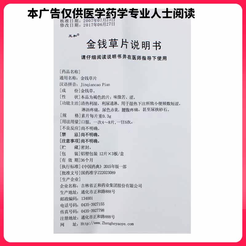 1 коробка бесплатной доставки] Yuanhe Money Grass Film 0.3g*12 штук*3 тарелки/коробки тепла, сырости, диуретической и мочеиспускающей частоты, короткий вяжущий, болезненный цвет мочи, боль в животе с красной талией.