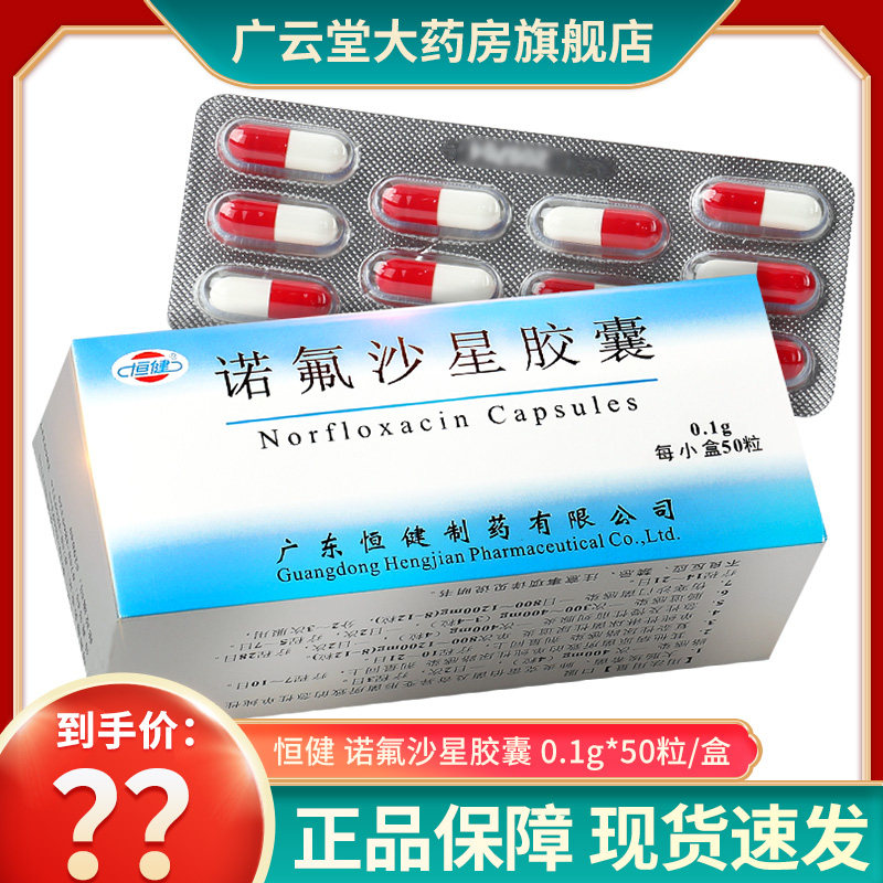 恒健 Капсулы норфлоксацина 0,1 г*50 капсулы/коробка GE простатит инфекция мочевыводящих путей