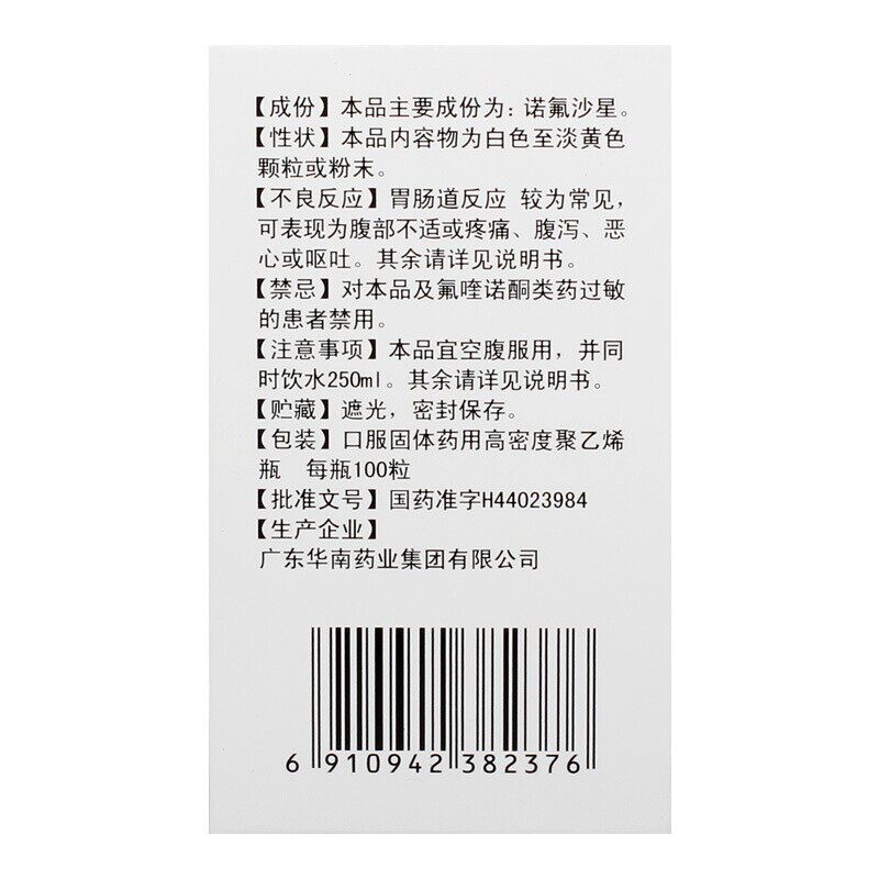 华南牌 Капсулы с норфроксацином 0,1 г*100 капсулы*1 бутылка/коробка чувствительная инфекция мочевывод