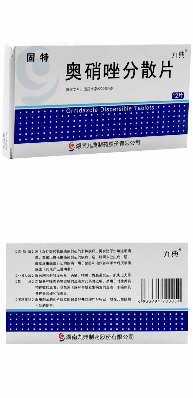 九典 Гусолидидазол диспергированные таблетки 0,25 г*12 таблетки/коробка