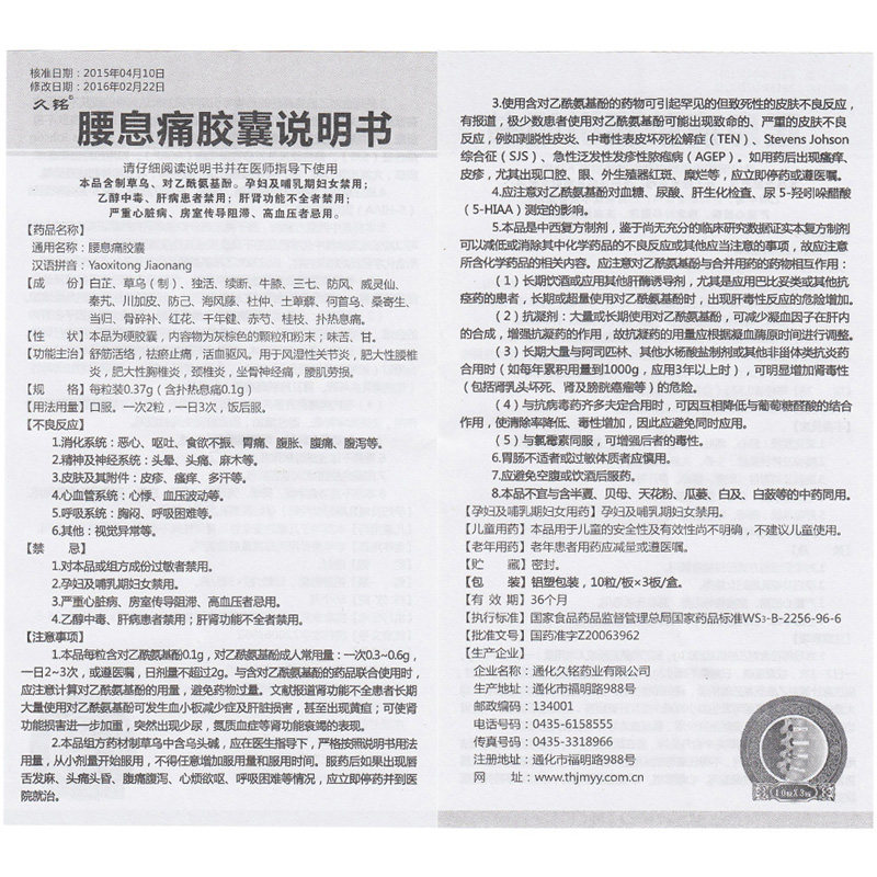 久铭 Поясничная тихоокеанская капсулы 0,37 г*30 капсулы/ящик -ревматоидный артрит ее поясничный пиджиштетентит травяной комотит шейный шейки матки ишиас невралгия