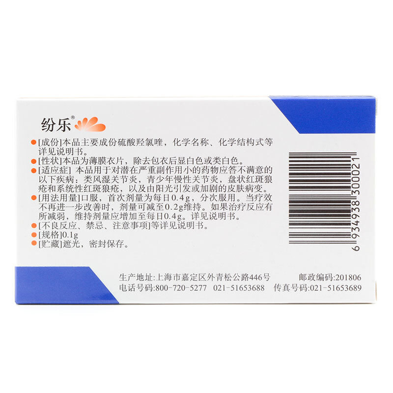 纷乐 Личная серная кислота гидроксилоххлор таблетки 0,1 г*14 таблеток/коробка ревматоидного артрита молодежь хронический артрит волчанка эритематозус кожи поражения