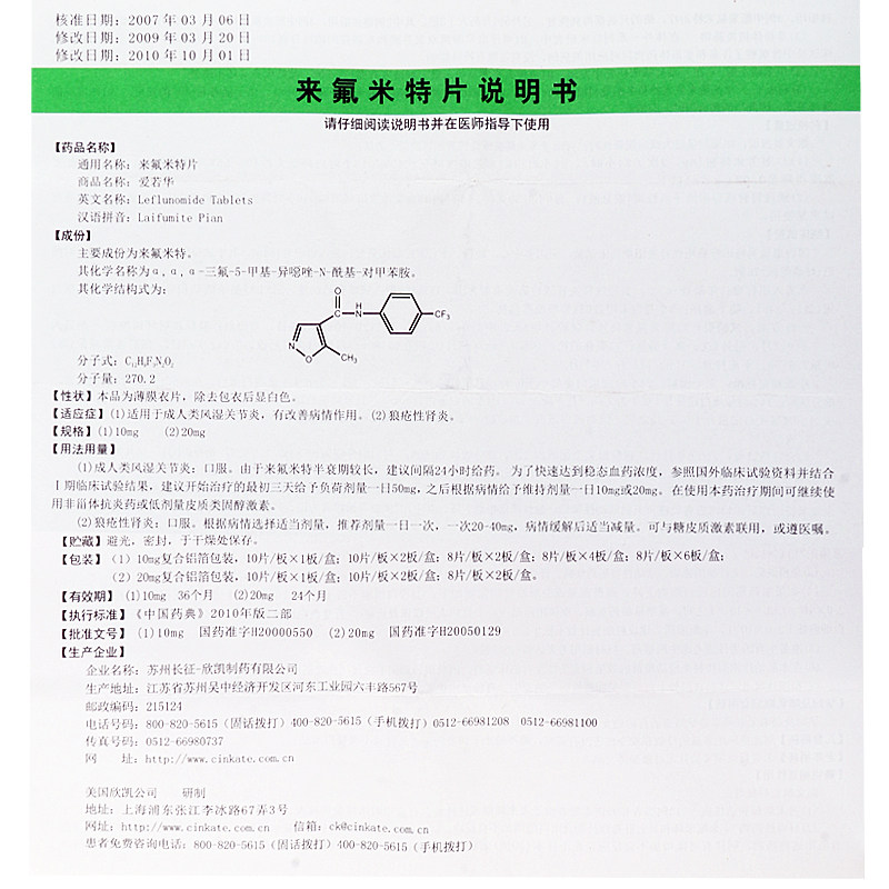爱若华 Айрухуа Лефлуномид Таблетки 20 мг*10 Таблетки/Коробка, подходящие для взрослых ревматоидного артрита, имеют эффект улучшения состояния, волчанного нефрит, Сучжоу Чангжэн-Синькоя Фармацевтической компании, Ltd.
