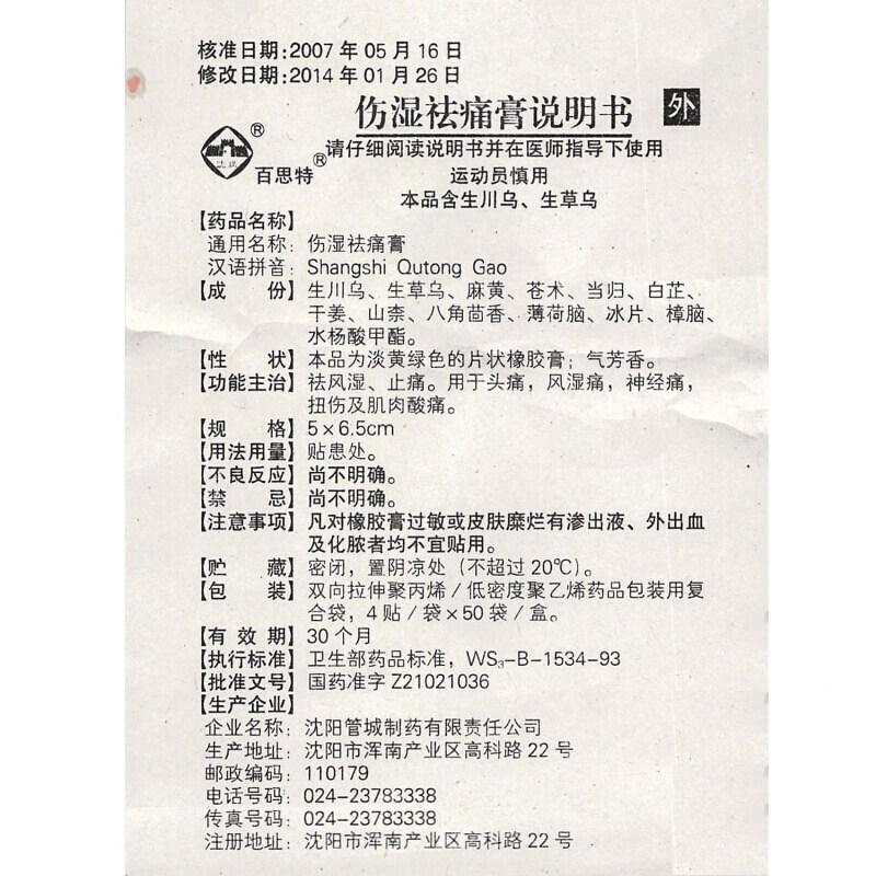 百思特 Травма мокрое боли крем 4 наклейки/сумка DF