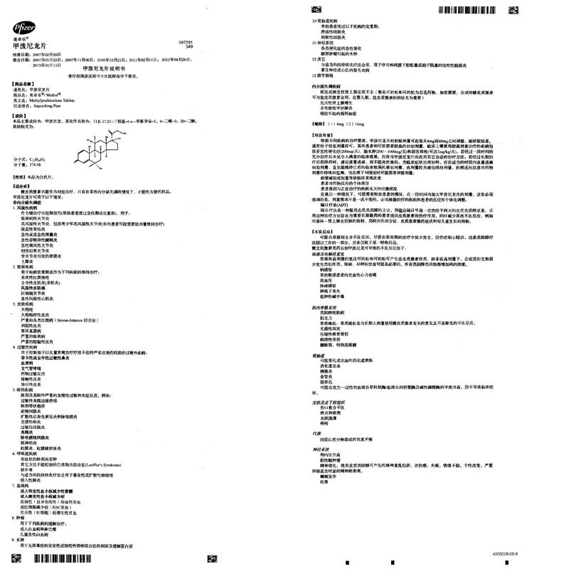 美卓乐 Mezhuo/Medrolo Нейлоновая нейлоновая пленка 4 мг*30 таблетки/коробка аутоиммунное воспаление Pfizer Ltalia SRL Medicine/Antuine