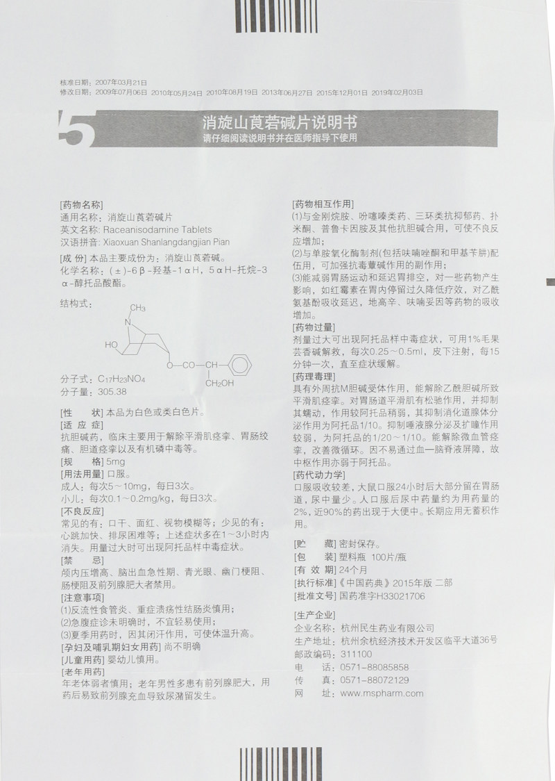 [Limited 3 коробки] Minsheng исчезает горная кожа -кали пленка 5 мг*100 таблетки/бутылка