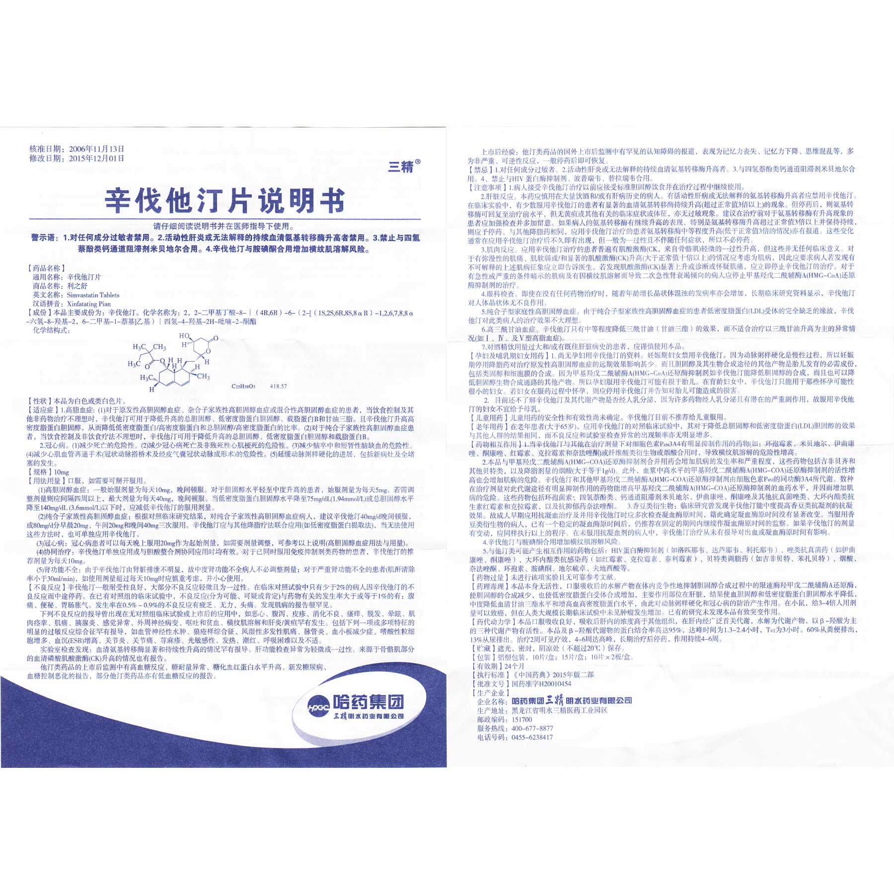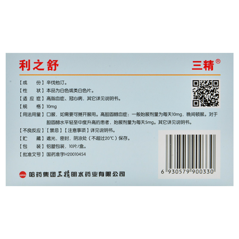 三精 Таблетки Lizhishu Xinzhou 10 мг*10 таблетки/гиперлипидемия первичного гипертрофона, ишемическая болезнь сердца, снижение инфаркта миокарда ишемической болезни сердца, задержка прогресса атеросклероза