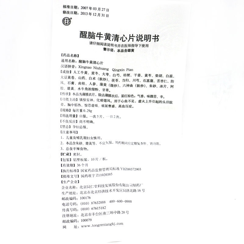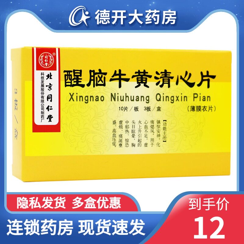 同仁堂 Wake -up Niuhuang Qingxin Plamp 0,29 г*30 Таблетки/седация коробки, печаль, мокрота и дыхание.