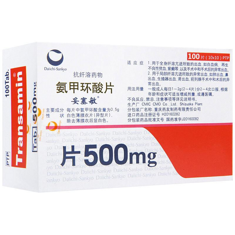 妥塞敏 Разнообразная транексамовая кислота, 0.5г, 100 штук