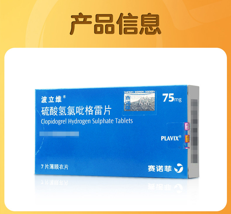 波立维 Polivo -Sulfate Hydrogen Chepidoglytic Talks 75 мг*7 таблетки/коробка