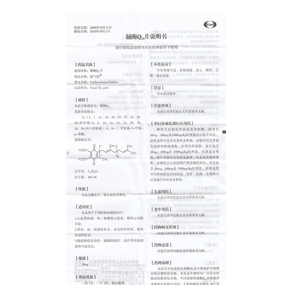 能气朗 Коэнзим Q10 Таблетки 10 мг*30 Таблетки/коробка вирусного миокардита гепатит рак комплексная терапия