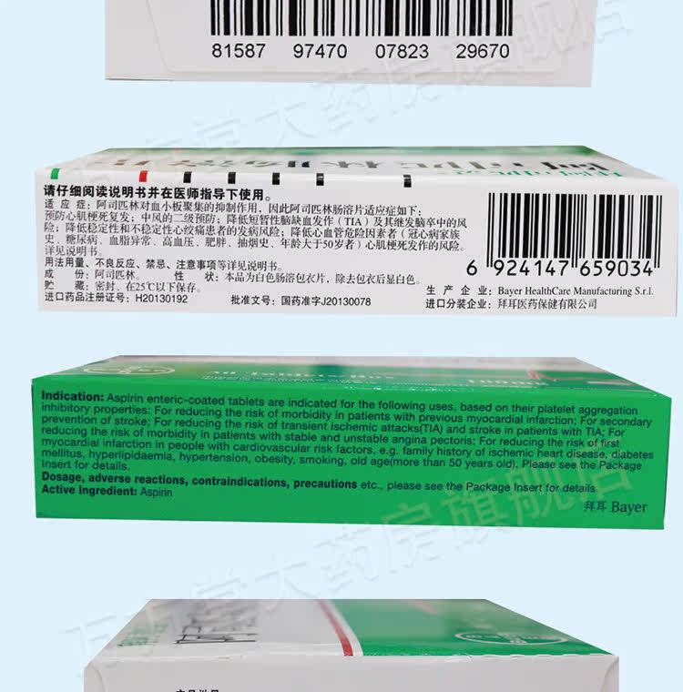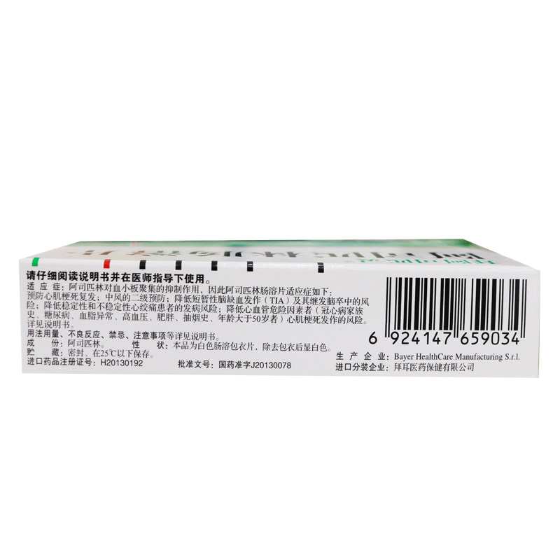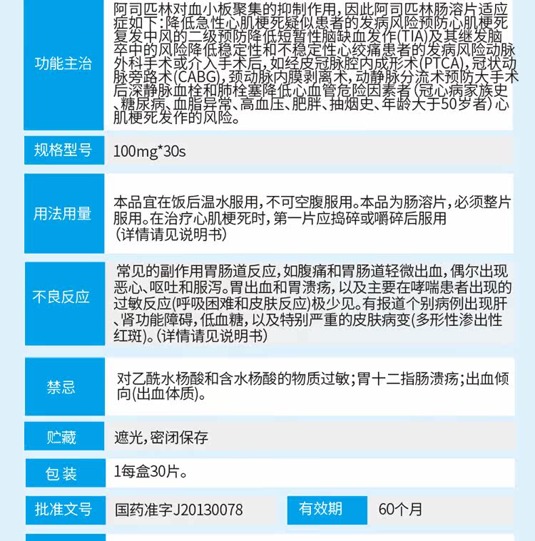 拜阿司匹灵 Аспирин энтерикохолические таблетки 100 мг*30 таблетки/коробка байер инфаркт инсульта импортированный инфаркт аспирина аспирин