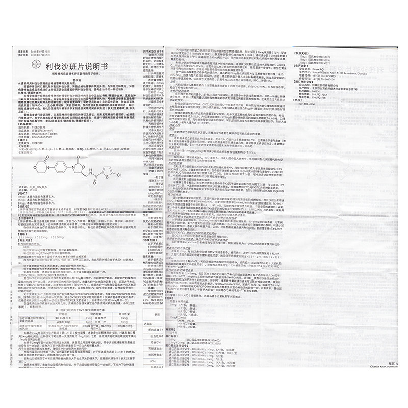 拜瑞妥 Liva San 10 мг*5 таблеток/ящик венозный тромбоз для уменьшения инсульта и системной эмболии