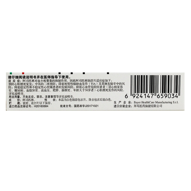 拜阿司匹灵 Аспирин энтерикатор -Современные таблетки 100 мг*30 таблеток/ящик ингибируют тромбоциты, собирая импортированный препарат подлинным