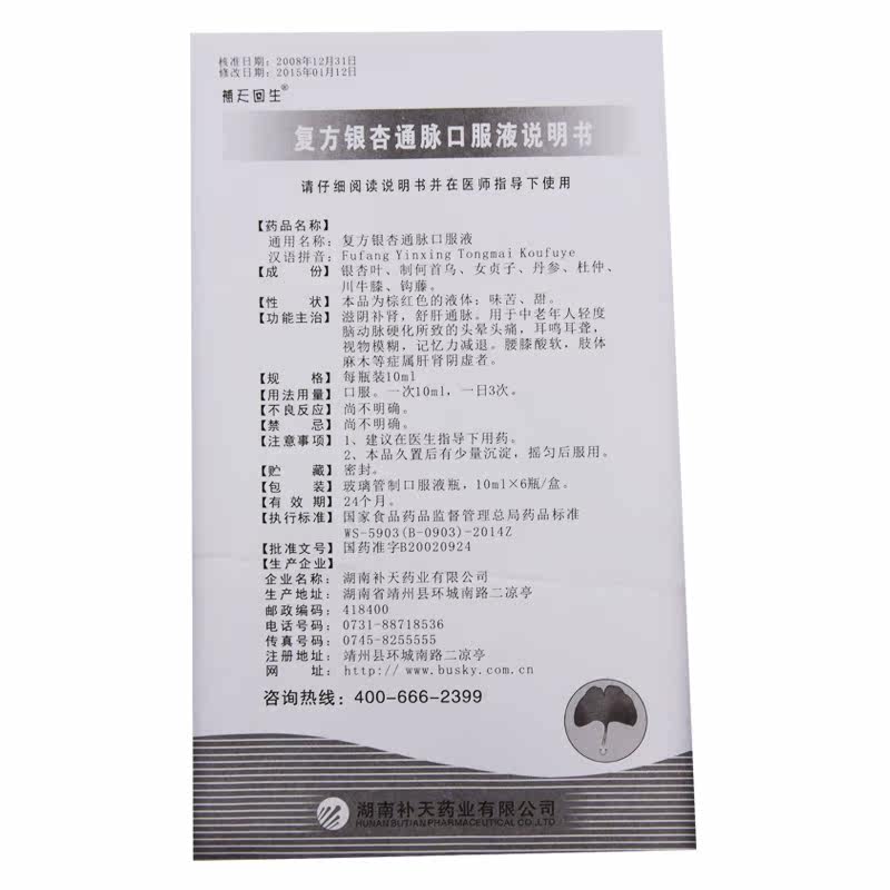 10 ящиков 440 Юань] Строительство обратно к жизни и соединению трубы Гинкго Пероральная жидкость 10 мл*6 Компания в ушах в ушах.