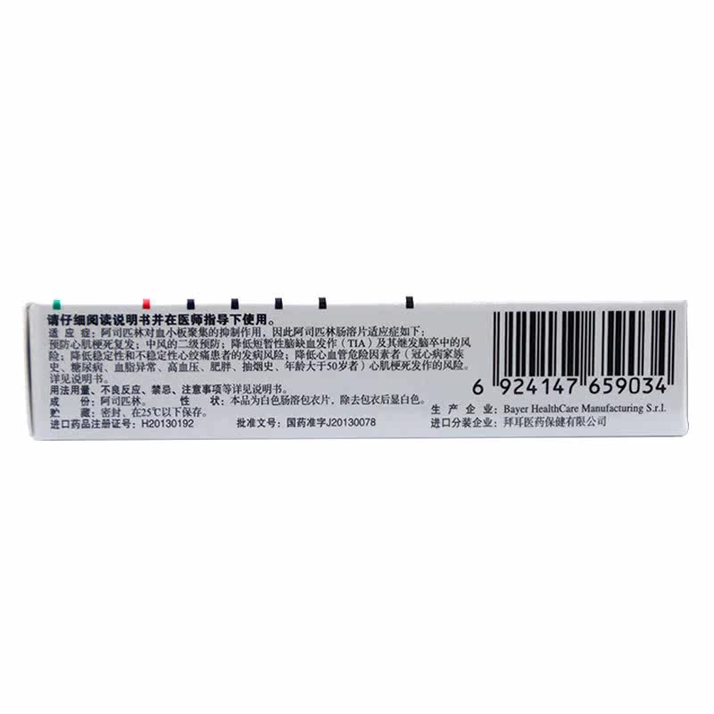 拜阿司匹灵 Аспириновая кишечная таблетка 100 мг*30 таблетки/коробка для предотвращения рецидива инфаркта миокарда