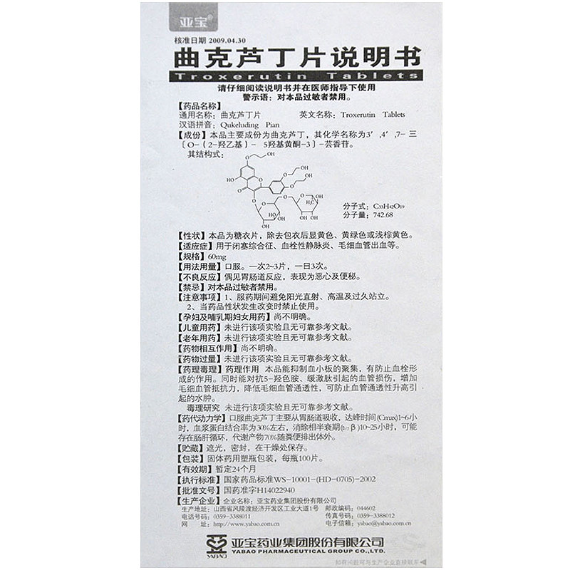 亚宝 Быстрые таблетки 60 мг*100 таблеток/бутылка для окклюзионных флагманских флагманских магазинов, таких как синдром окклюзии, тромбоз венузит, капиллярное кровотечение и т. Д.