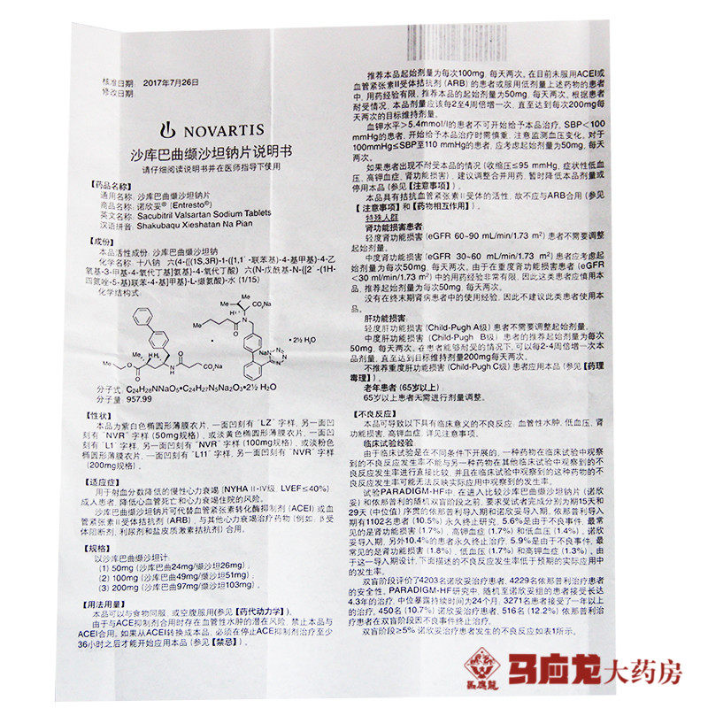 诺欣妥 Nova/Enteresto Shatakusa Salin Soda Таблетки 50 мг*28 Таблетки/Коробка Хроническая сердечная недостаточность Заменить сосудистое напряжение Nuoxinuo New ZH