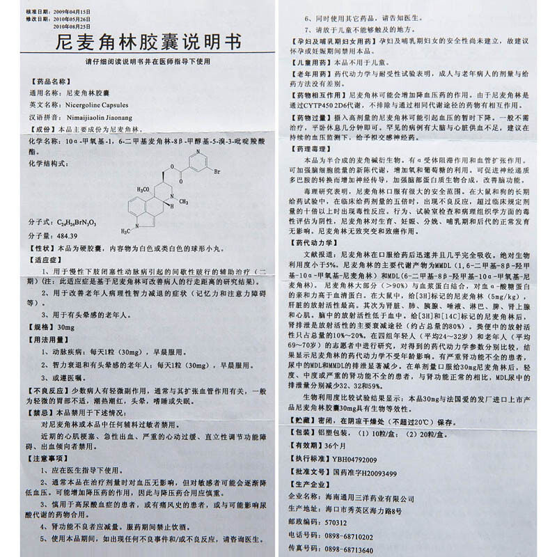 凯尔 Лесная капсула Нимаи Кок 30 мг*10 капсул/ящик DF используется для прерывистой хромоты, вызванной хроническими артериями окклюзии нижней конечности для улучшения патологического интеллекта пожилых людей