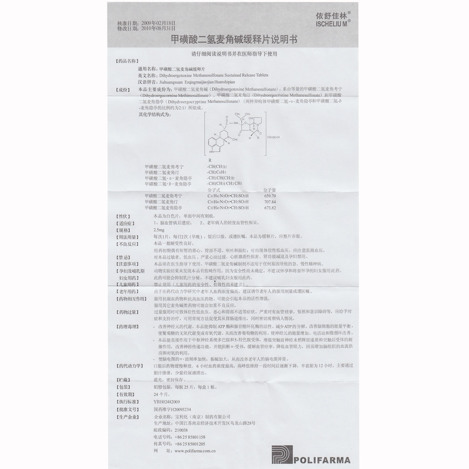 Tongshujialin -Сульфоновая кислота дигидроуглерод -аналклиновый медленные таблетки 2,5 мг*25 таблетки/коробка цереброваскулярных последствий деменция деменция