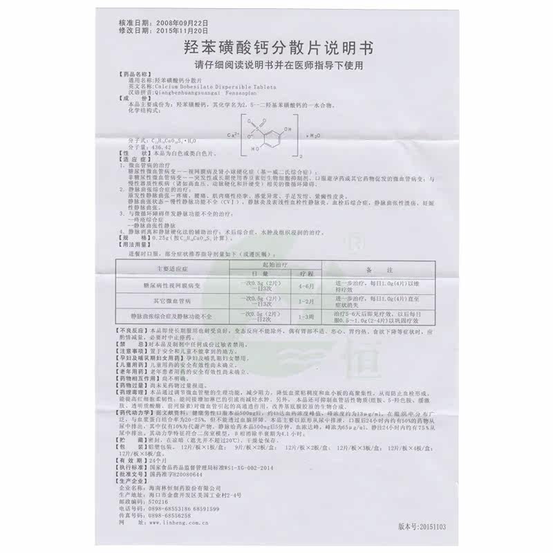 恒恩 Гидрокситированный сульфонат кальциевый сульфонат таблетки 0,25 г*24 таблетки/варикозное варикозное синдром вен Синдром вены ретинопатия C -ретинопатия C
